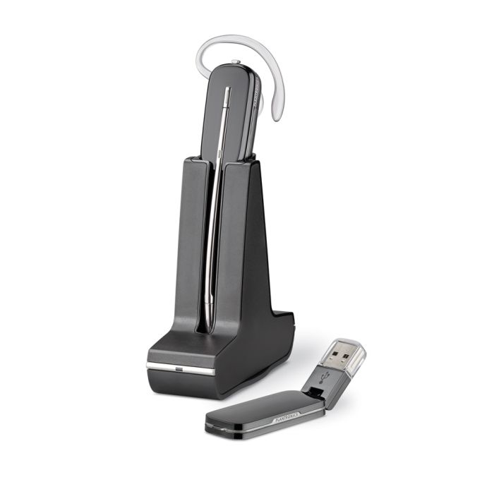 The Savi 440 is a monaural convertible headset that offers three different wearing styles, and offers support for UC applications and softphones from Avaya, Cisco, Skype and more, with Up to 6 hours of talk time.